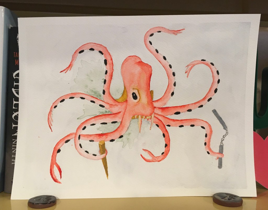 In other news, I have been enjoying my watercolors lately, painting imaginary beasts to represent some really thorny programming modules and administrative systems that I’ve encountered at my day job. (It’s a whole thing.) Here’s one: